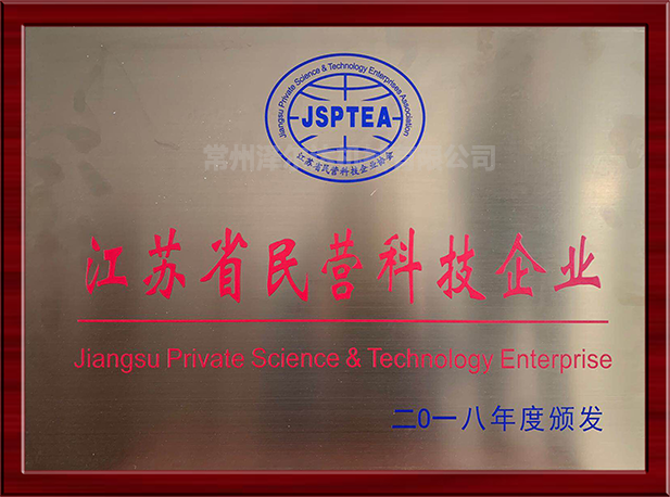 - 2018年03月,榮獲“江蘇省民營科技企業(yè)”授牌。