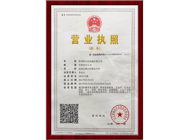 - 2013年5月,常州澤爾達機械有限公司注冊成立。